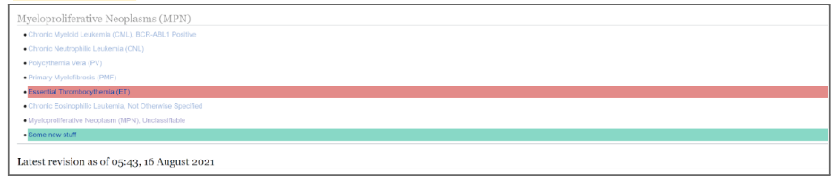 - Same disease entity exists in HAEM4 and HAEM5 but no prior content added into HAEM4 page - no content to bring over to HAEM5 page (add content from scratch).