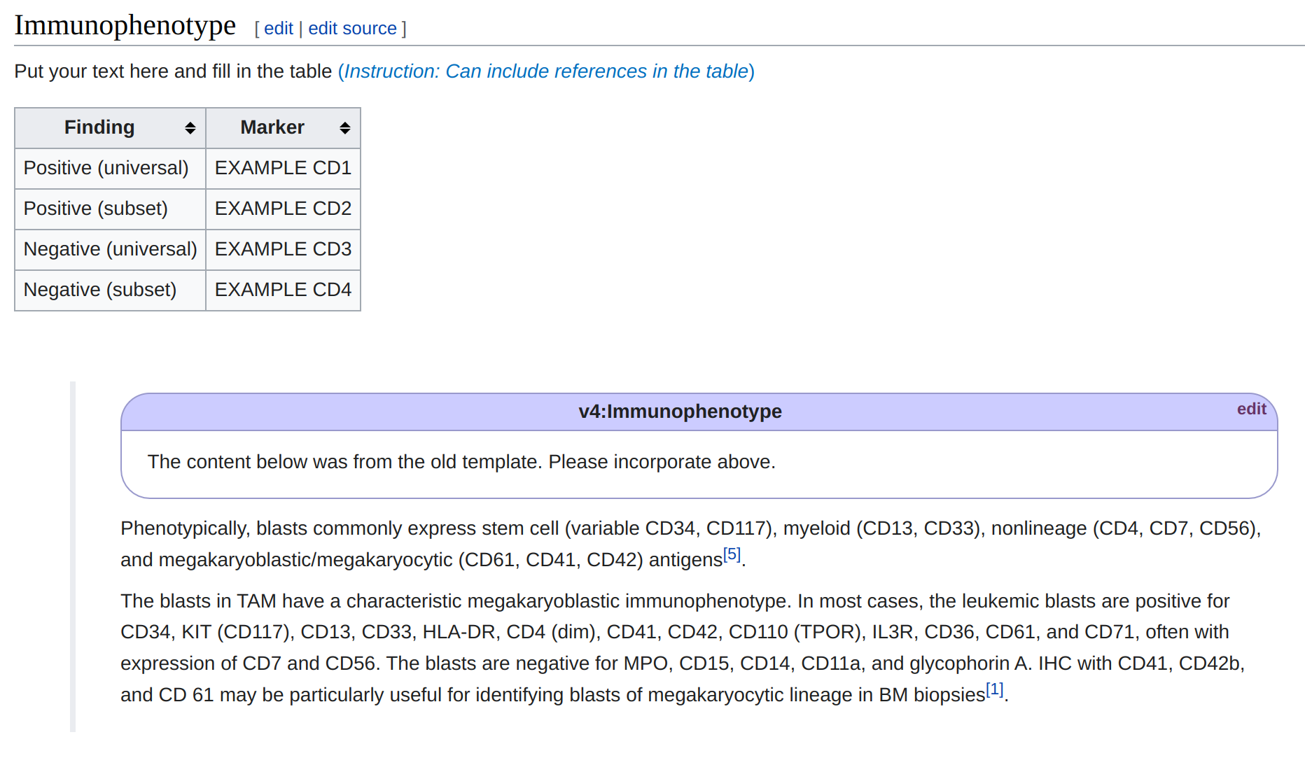- Note: The automated process has also attempted to convert older template structure to the current template on all HAEM5 pages when possible. This changes the structure of several key tables in particular. Please take the relevant content from each section and incorporate it into the new sections.