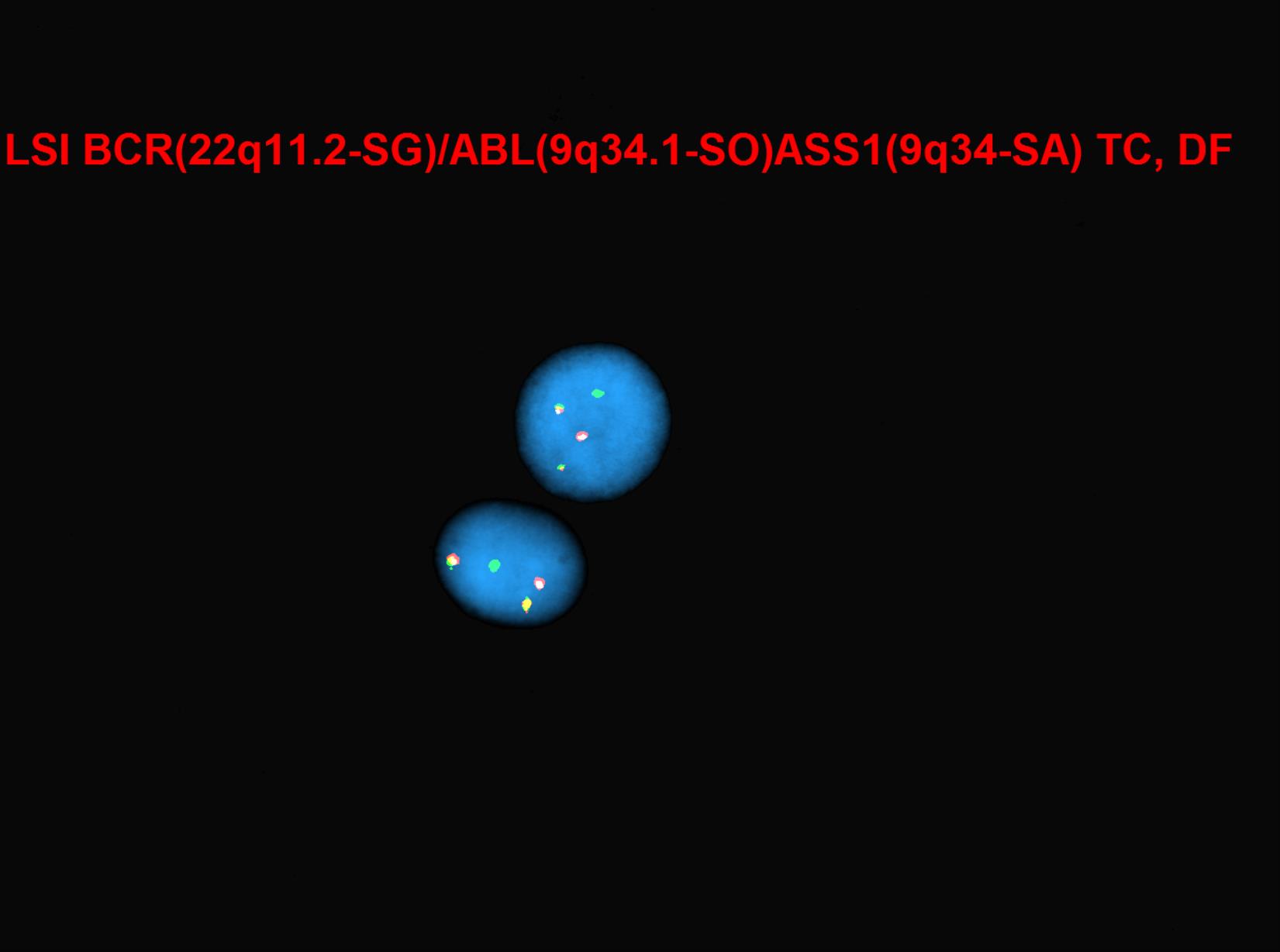 | t(9;22)(q34.1;q11.2) | 3'ABL1 / 5'BCR | More than 90% |