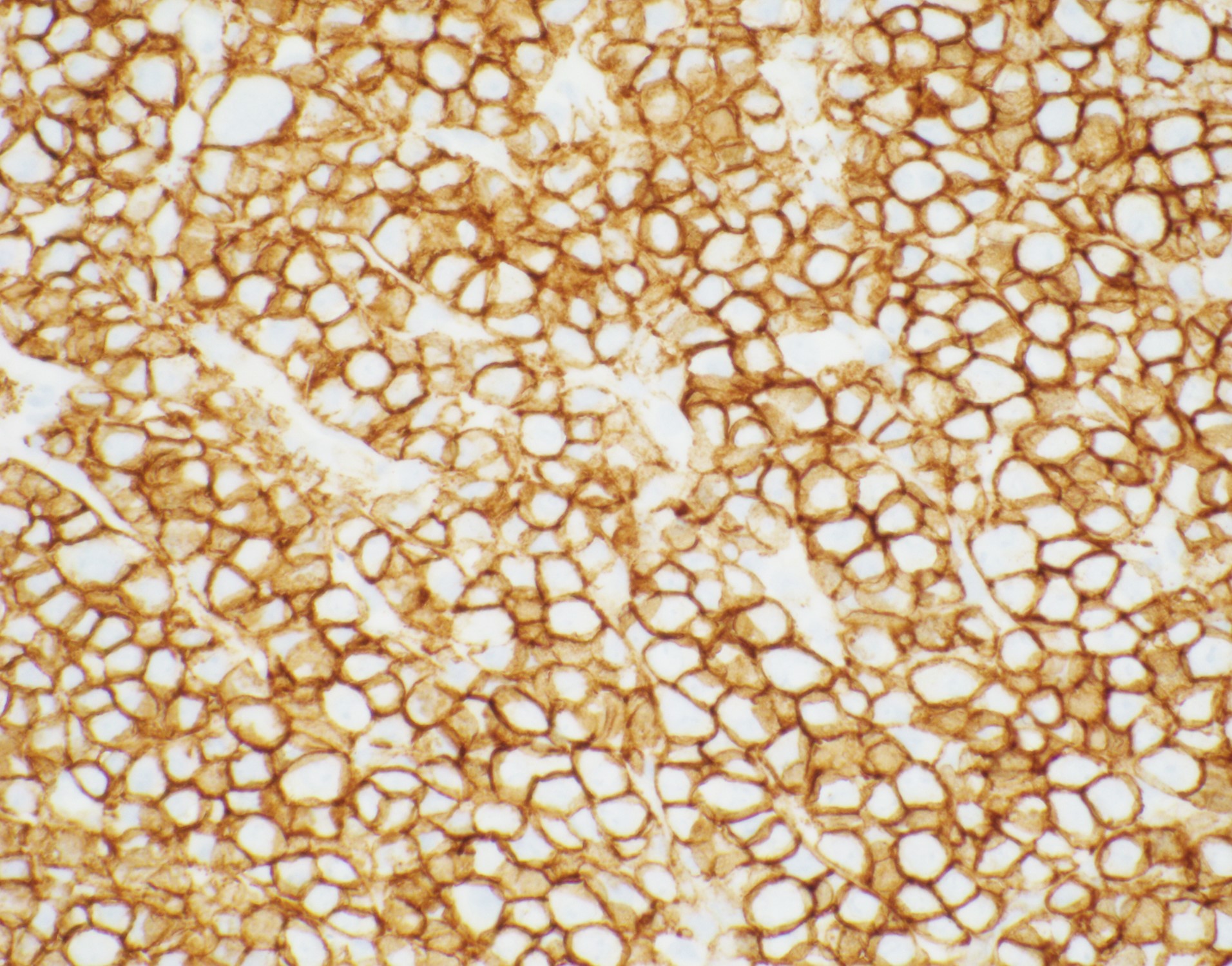 (PBL strongly positive for CD138 by immunohistochemistry; image courtesy of Mark Evans, MD)